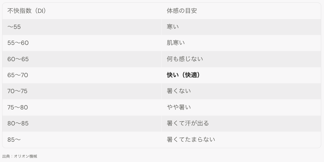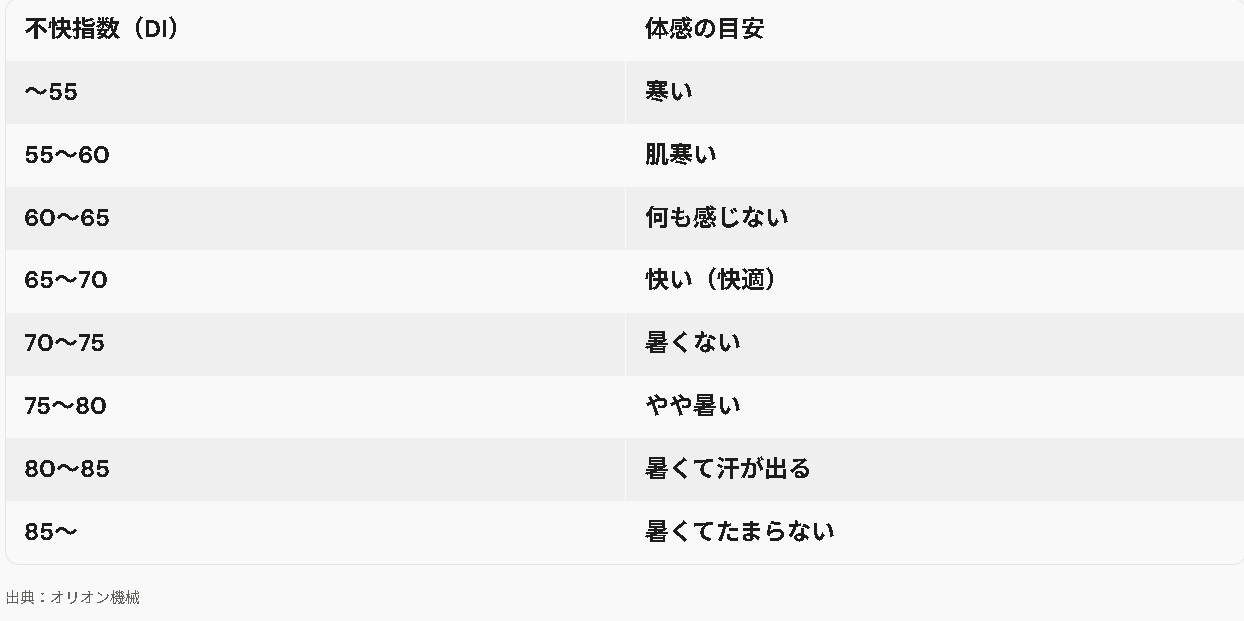 不快指数 体感目安(一覧)