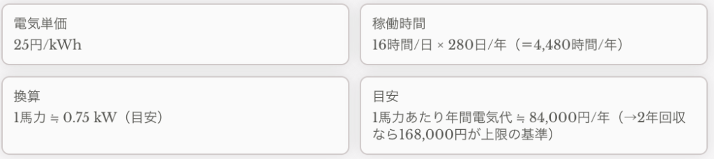 この表は、「2年で回収したい」場合の"投資できる予算上限(円)"の目安です。