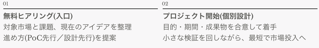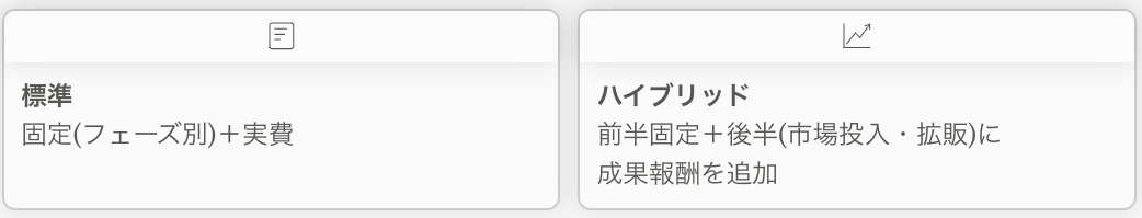 本サービスは、目的とフェーズに応じて以下の支払い形態を選べます。