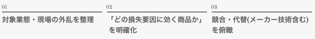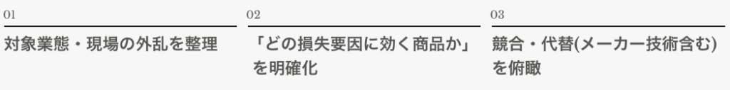 既存商材:用途再定義、導入条件整理、売り方再設計