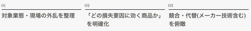 現状ヒアリング/ターゲット仮説/損失要因と刺さる用途の整理/進め方提案