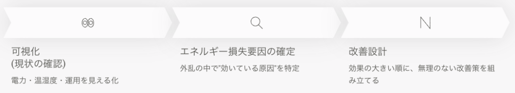 ・空調省エネの進め方: 可視化 → 損失要因の確定 → 改善設計