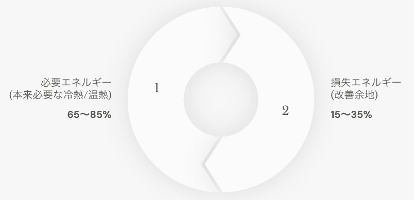 空調に使われるエネルギー(電力)のすべてが"必要な冷熱/温熱"として役立っているわけではありません。