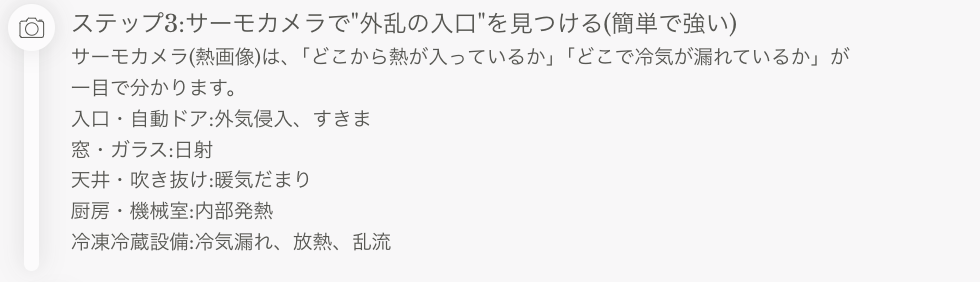 外乱を理解し、可視化 → エネルギー損失要因の確定 → 改善設計の順で進めると、快適性を守りながらムダを減らせます。