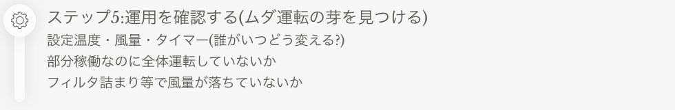 設定温度を下げる/風量を上げる/運転時間を伸ばす対応が起きやすく、