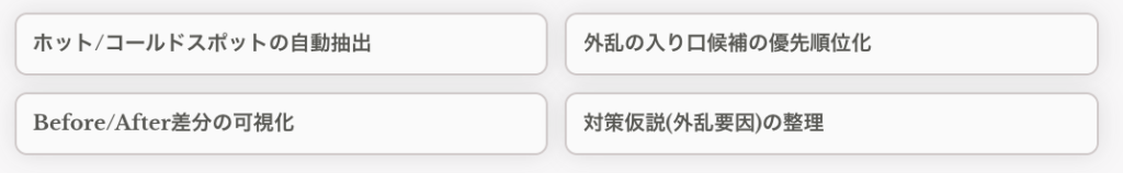 外乱が多い空調では、いきなり対策を決めるよりも、先に"いま何が起きているか"を見える化した方が早道です。
